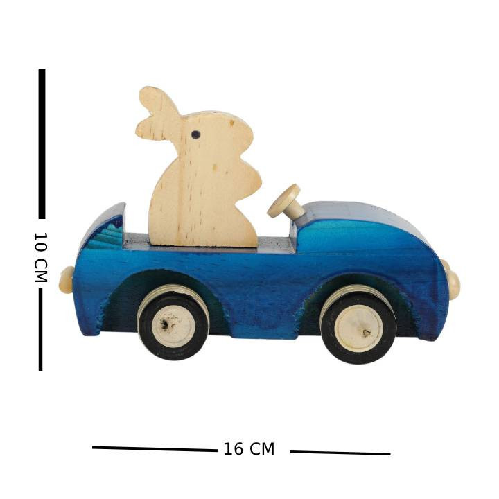 Crafted from sustainable wood and adorned with safe, non-toxic paints, this charming pull-along car features a friendly rabbit driver ready to take your little one on exciting escapades.