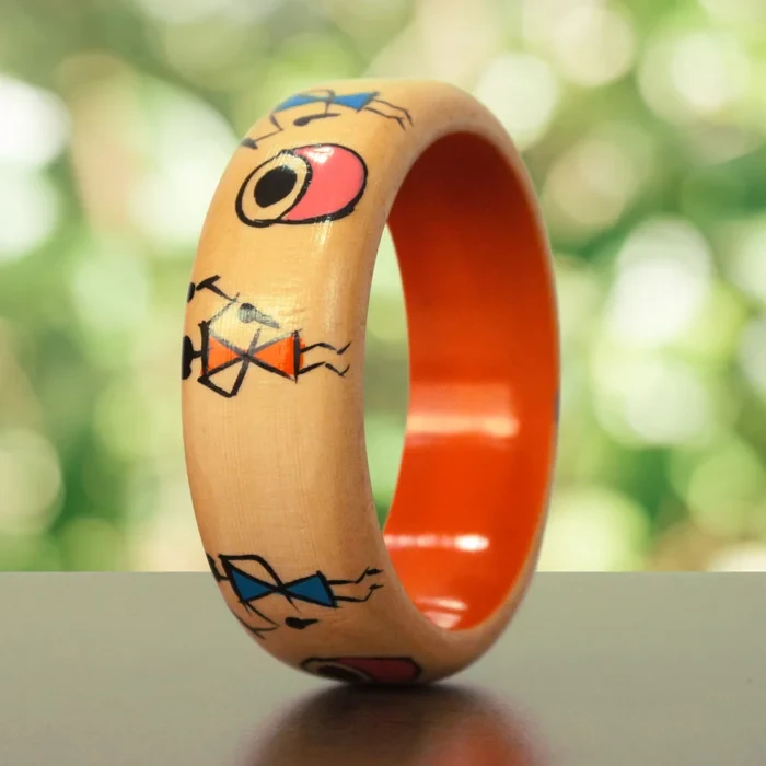 Soft & Light Wood turned on a lathe and lacquered with Dyes extracted from Vegetables makes the craft Skin friendly and marks a perfect fusion of Tradition with Sophistication.