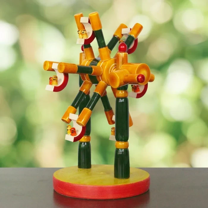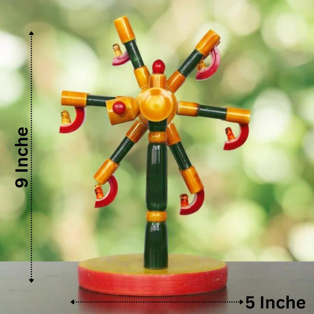 Whether displayed as a decorative piece or enjoyed as a toy, the Channapatna Eco-friendly Wooden Giant Wheel Toy is a timeless symbol of craftsmanship, sustainability, and the beauty of traditional Indian craftsmanship.