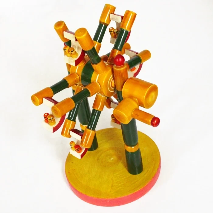 Constructed entirely from locally sourced sustainable wood, typically rosewood or sandalwood, this toy embodies eco-friendliness from its very core. Each component is carefully carved and polished by skilled artisans using age-old techniques passed down through generations. The wood is treated with natural dyes and finishes, ensuring the safety of children and the preservation of the environment.